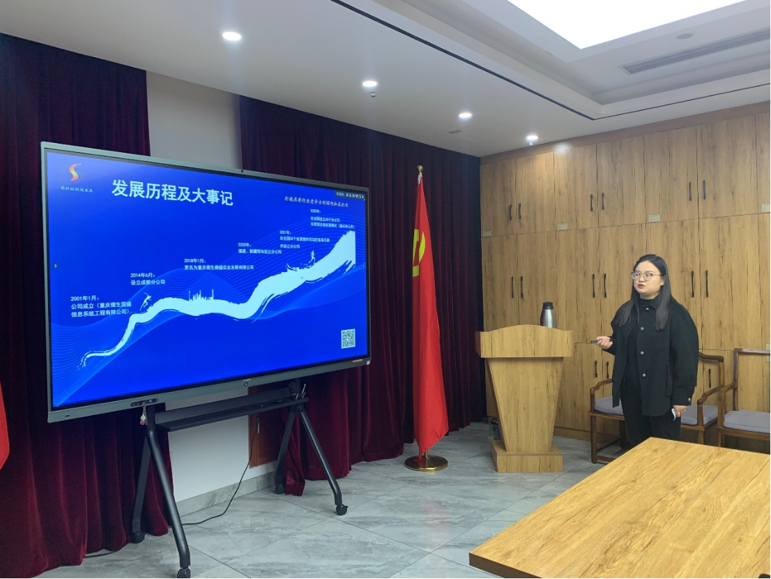 重庆德生鼎盛实业发展有限公司支部副书记袁娇介绍了公司的发展历程,经营状况及主要工作内容。她指出,德生鼎盛拥有多领域,多行业,多专业的特点,新的一年将继续加强行业交流、深化多方合作,共同推进行业的发展。